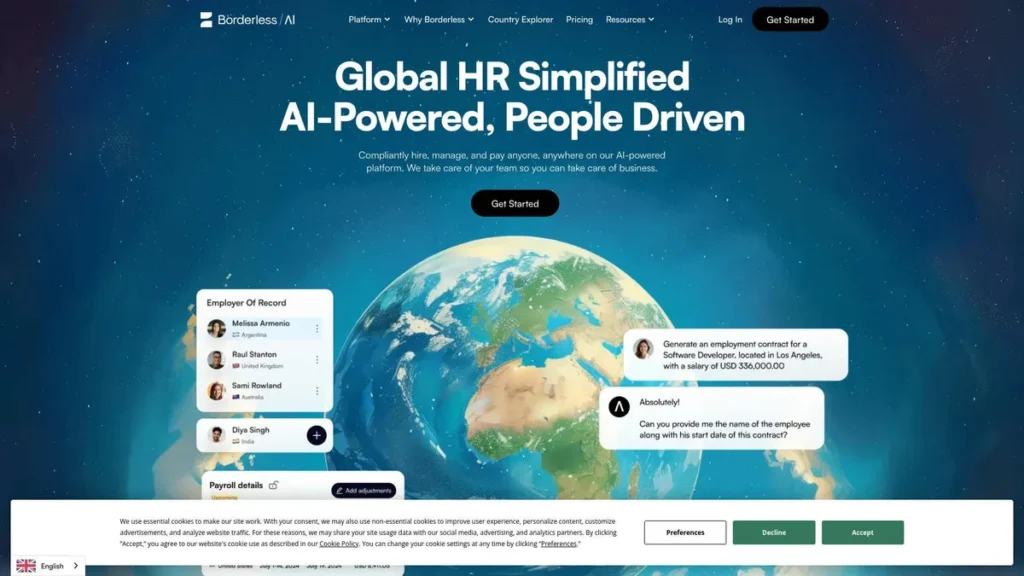 The single most powerful feature of Borderless AI is its AI agent, Alberni, which automates the creation and analysis of legally compliant employment contracts across multiple countries. For a business owner, this functionality directly translates to a massive reduction in legal risk and cost. Instead of hiring expensive law firms in each country you hire from, the platform provides the necessary legal framework as part of its service. This focus on automated compliance, combined with a transparent cost structure that avoids hefty upfront fees, removes two of the biggest barriers to global expansion. The platform’s real value lies in making complex international HR manageable and affordable for businesses of any size.