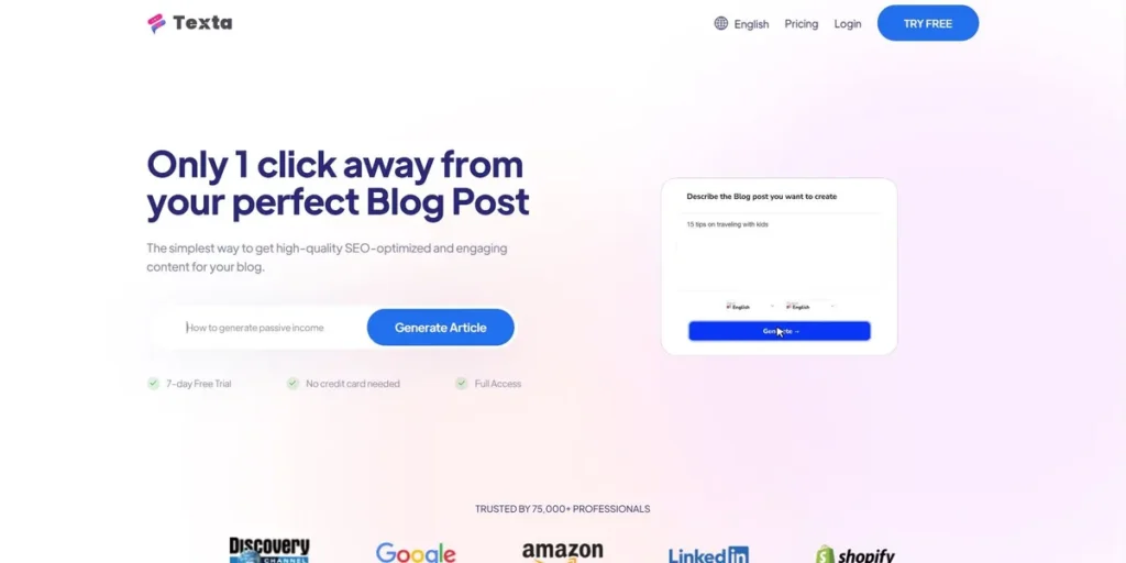 - Internal Tools Developers: Can integrate Texta into internal applications to automate the generation of reports, summaries, and internal communications for HR or operations departments.